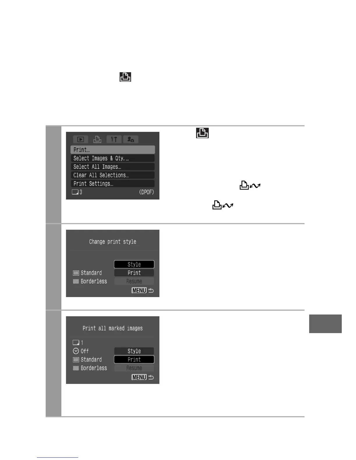 With the camera’s (Print) menu, you can specify and print