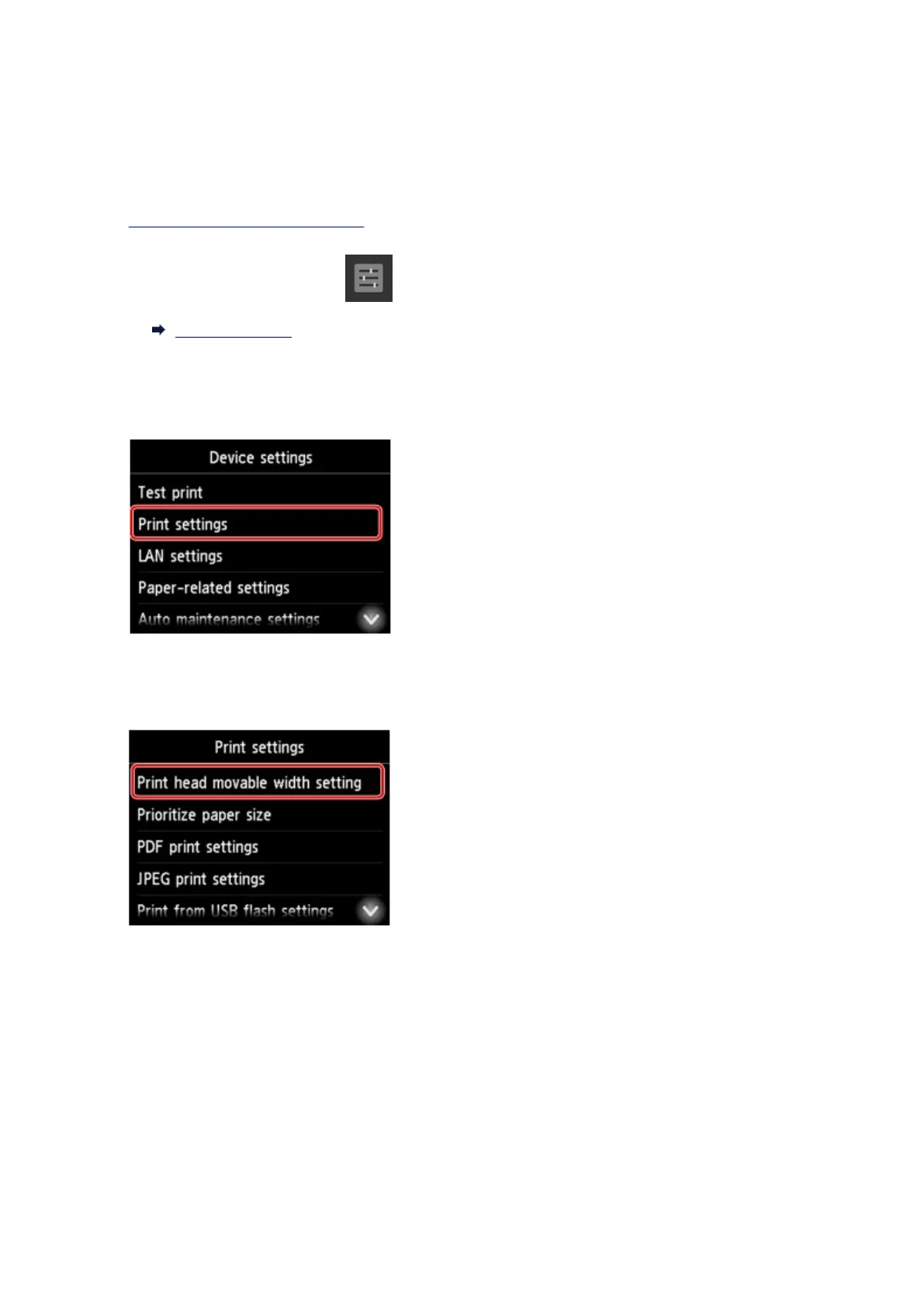 to specify Print head movable width setting as an example.