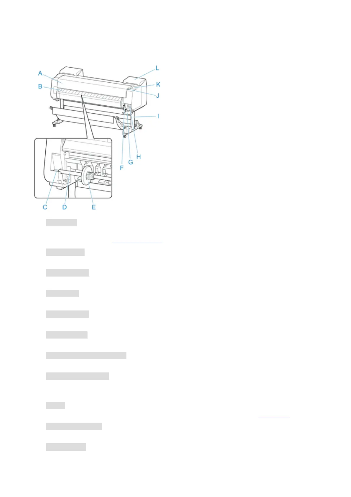 Guides printed documents as they are ejected. Open this guide when loading a roll.