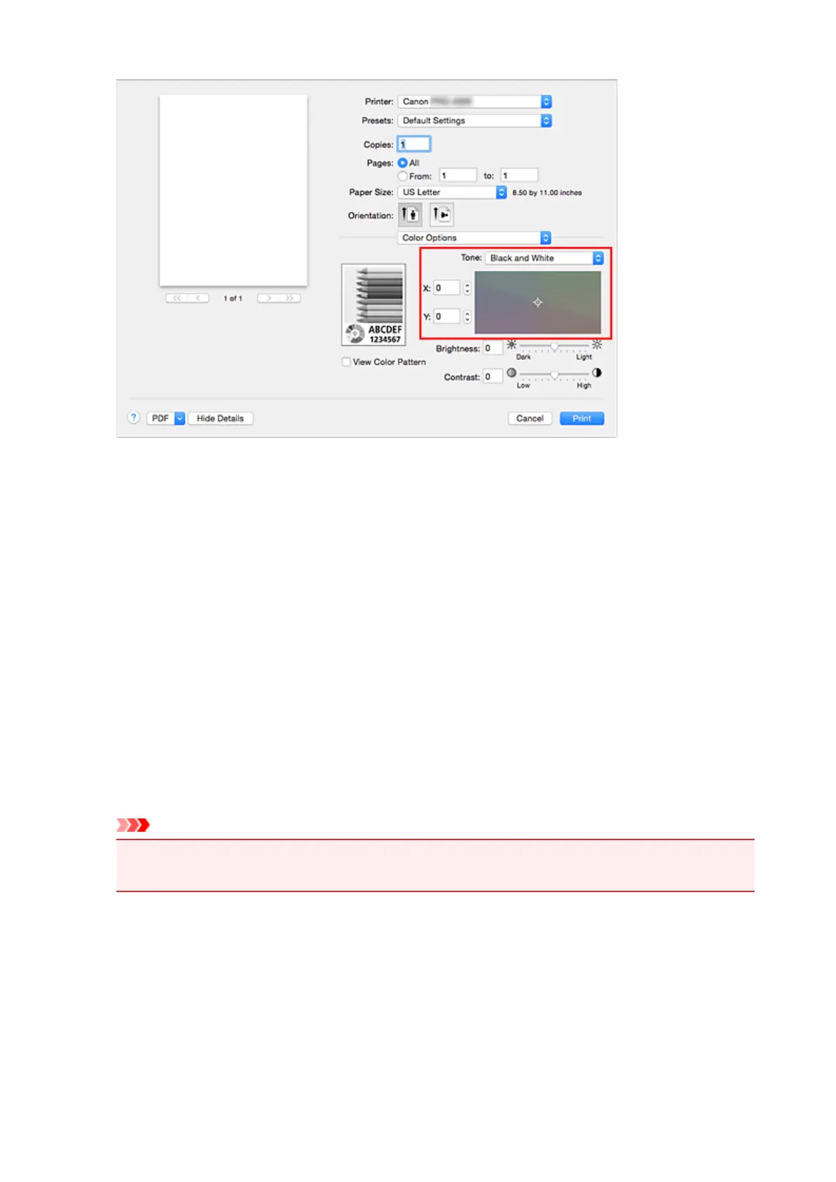 To adjust the color tones, either enter values directly to X or Y (Monochromatic adjustment value) or click