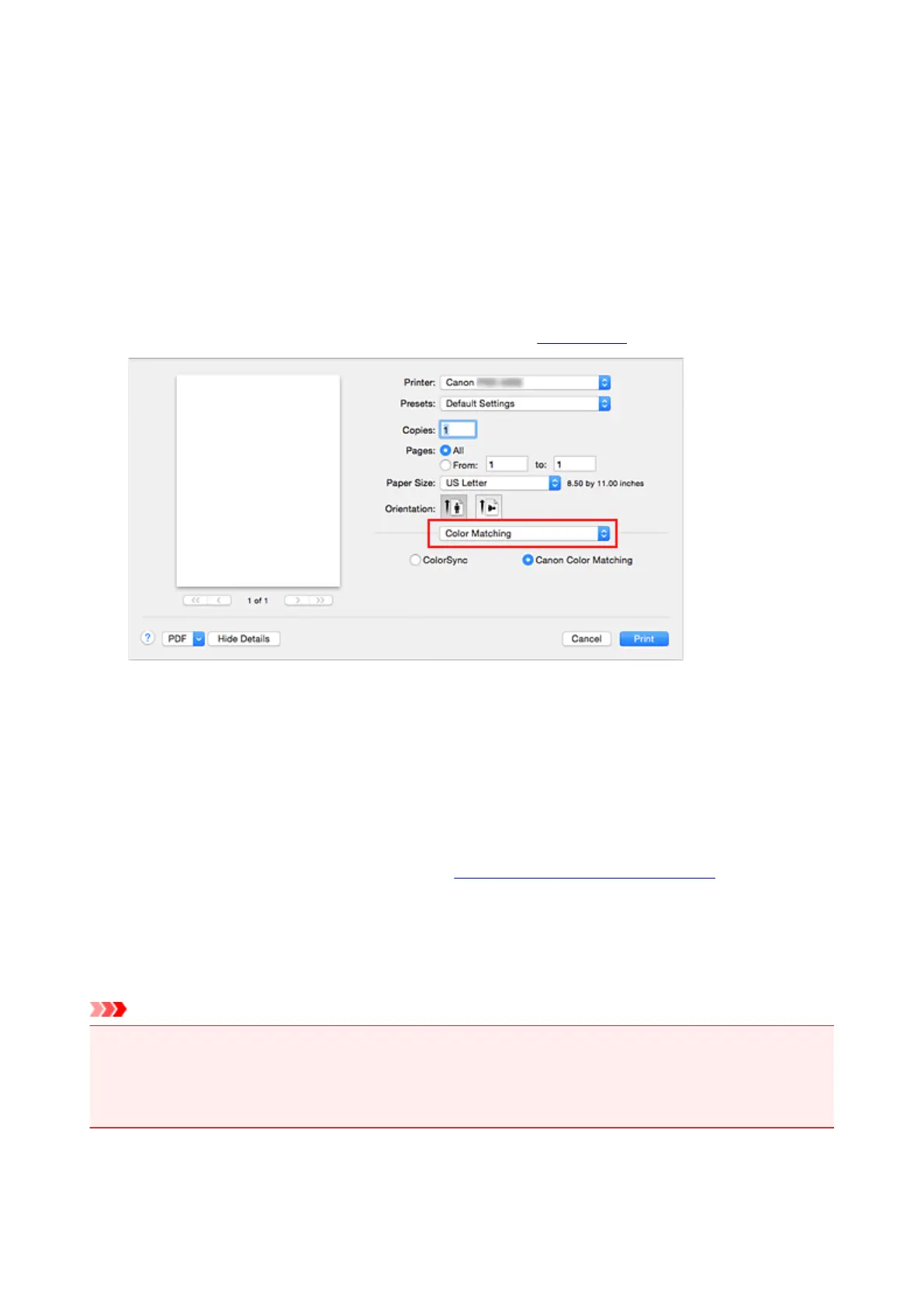 software, Canon Color Matching cannot be selected because ColorSync is selected automatically.