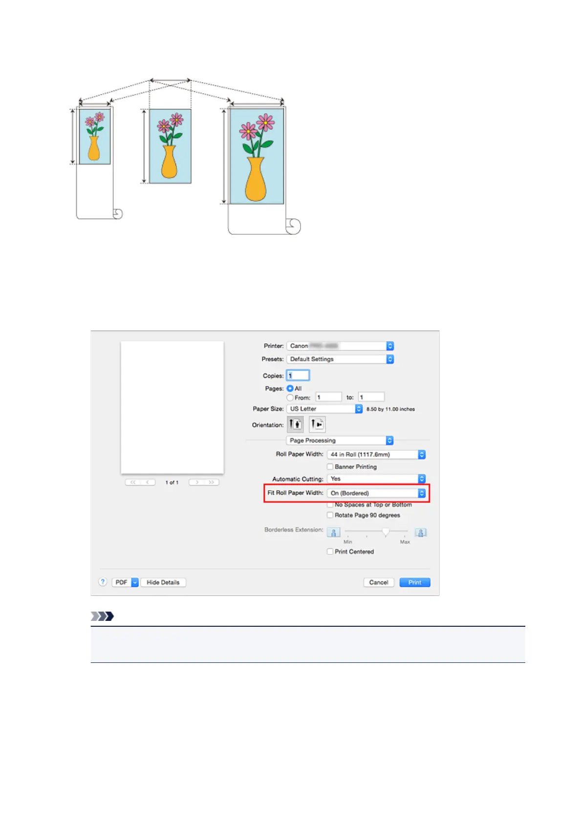 For Fit Roll Paper Width, select On (Bordered) or On (Borderless).