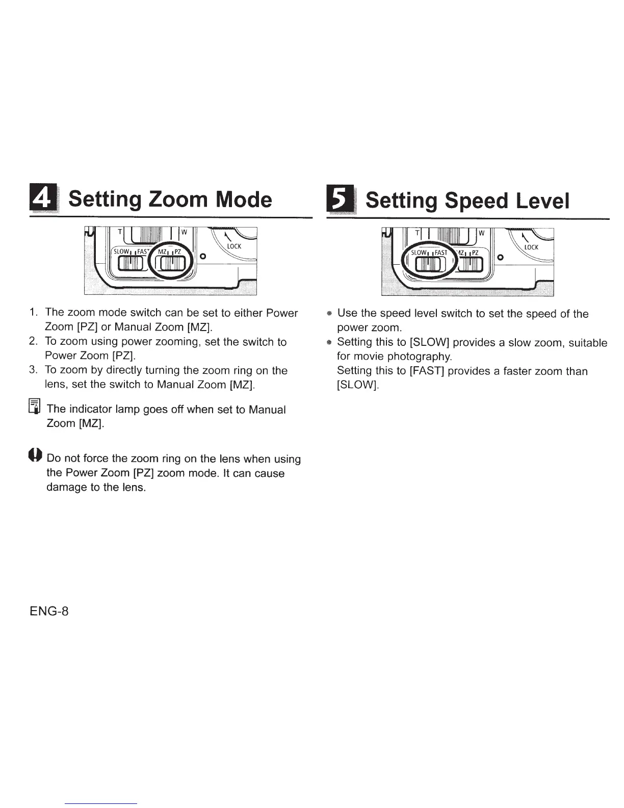 Canon pz-e1 - Setting Zoom Mode; Setting Speed Level