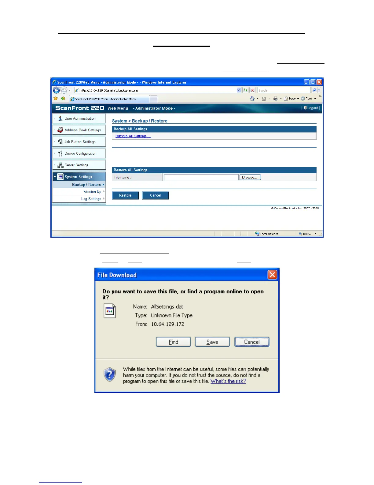 3. After logging in to the ScanFront Administrator Web Menu, click on the System Settings