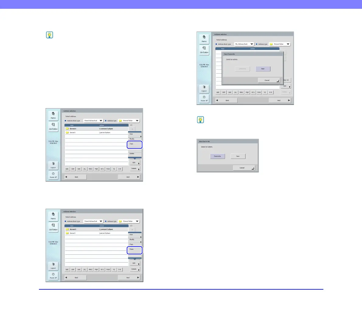 • If you select [Overwrite], the existing address with the same