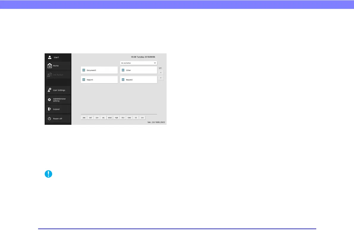 This screen enables you to select a job button to scan using