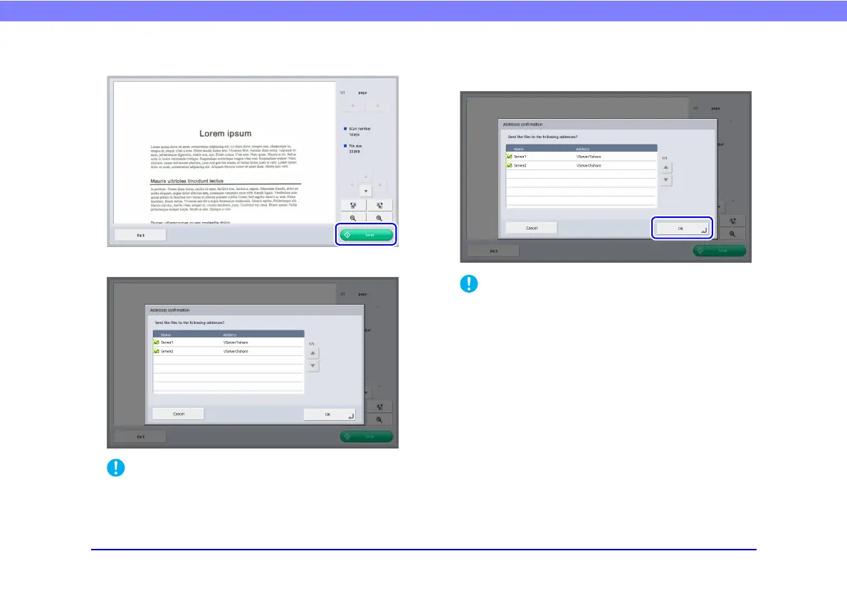 If [Confirm addresses before sending] is set to [OFF] in Send