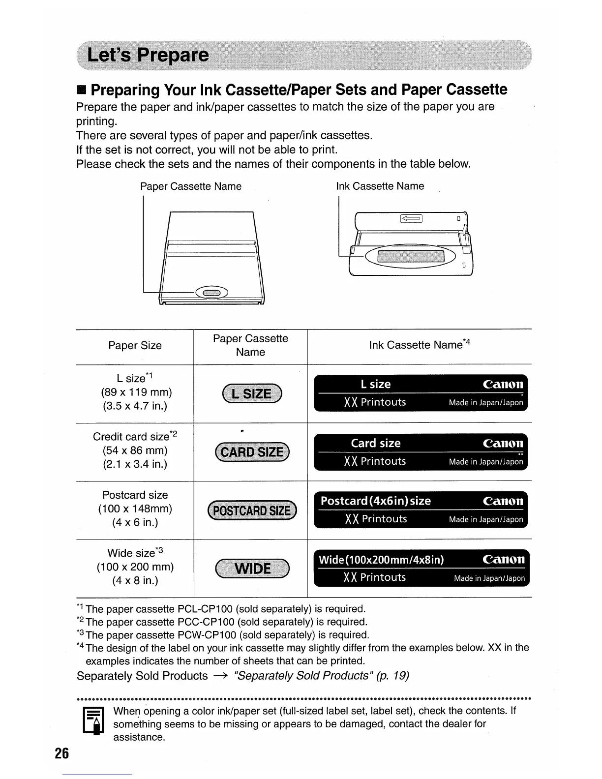 • Preparing Your Ink Cassette/Paper Sets and Paper Cassette