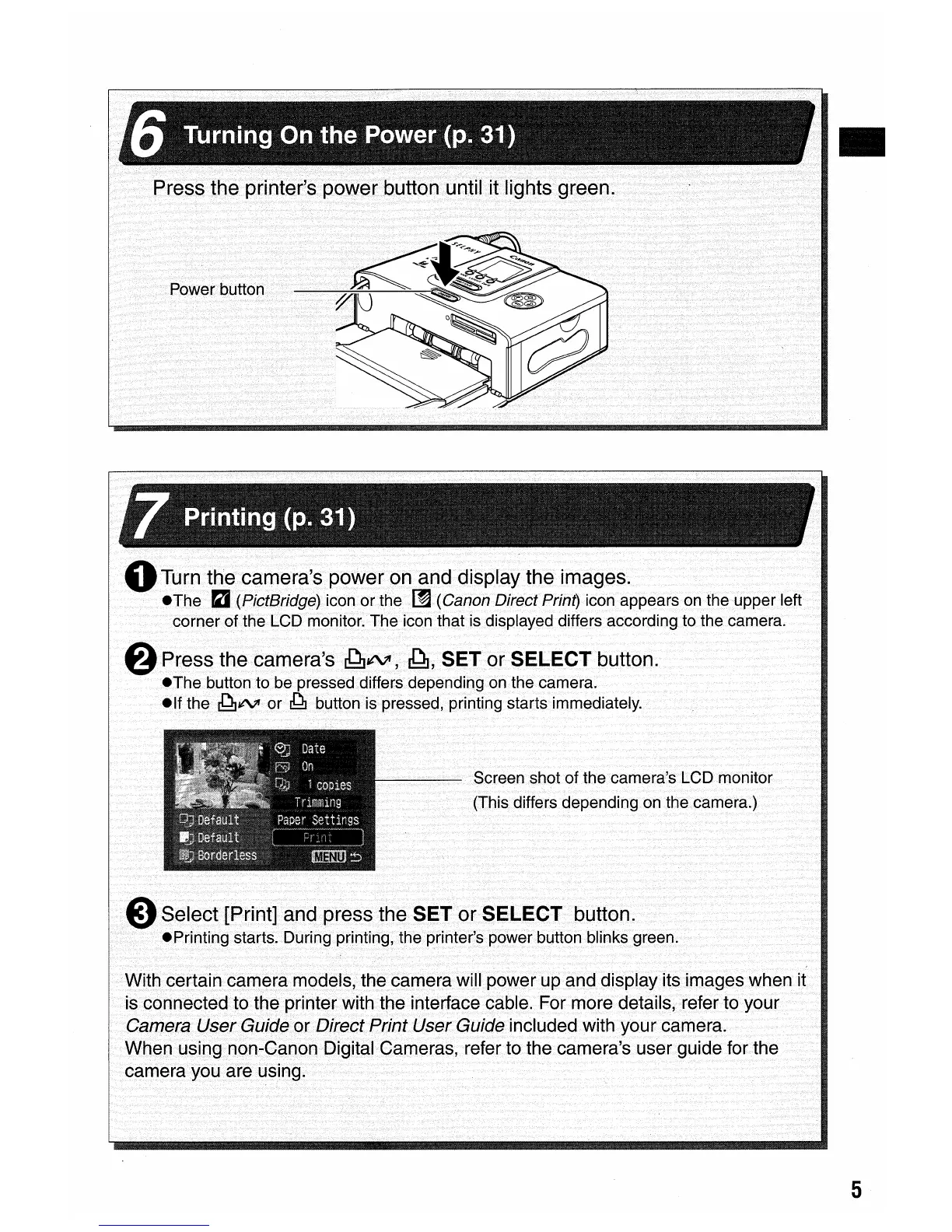 When using non-Canon Digital Cameras, refer to the camera's user guide for the