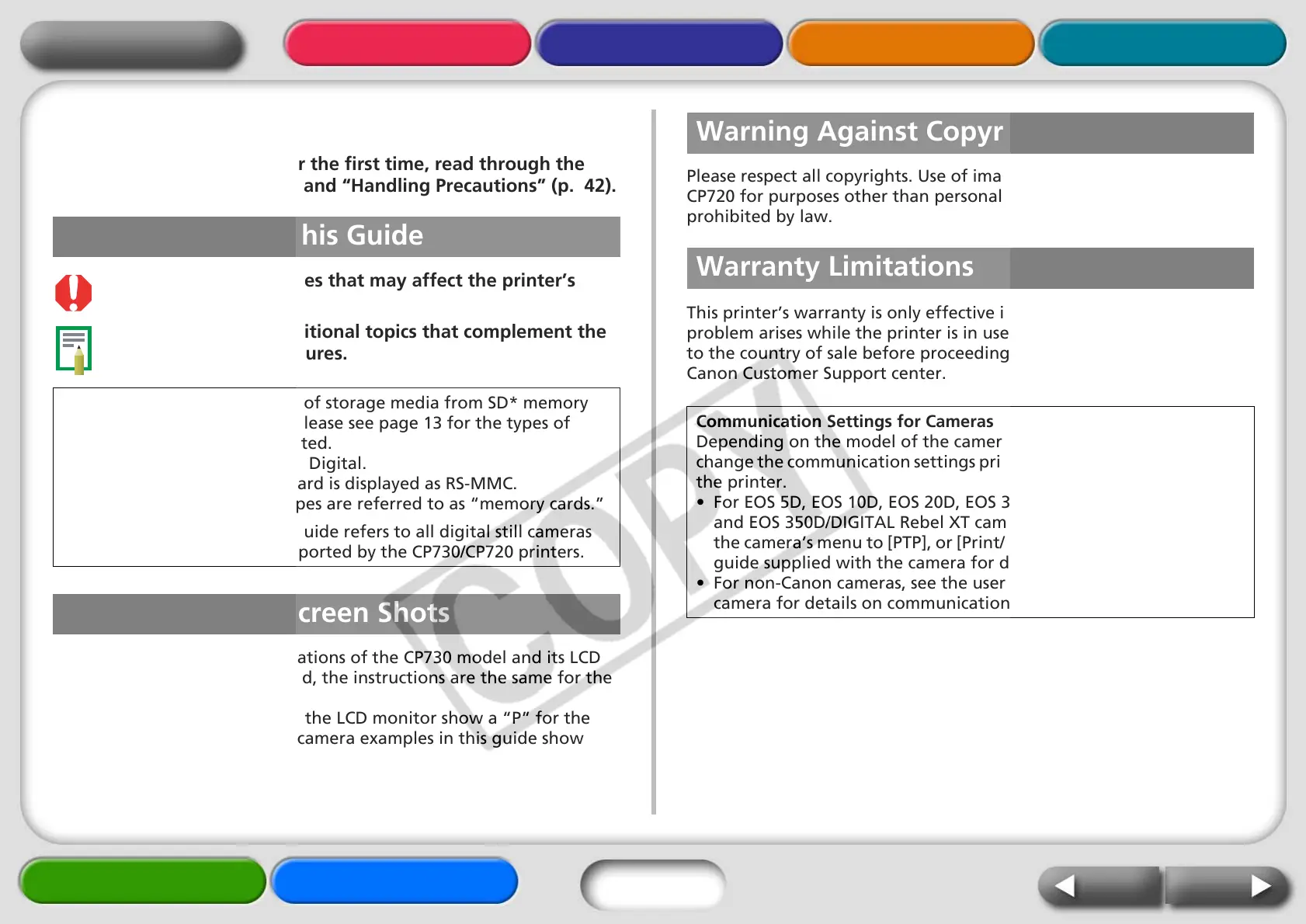 This guide primarily uses illustrations of the CP730 model and its LCD
