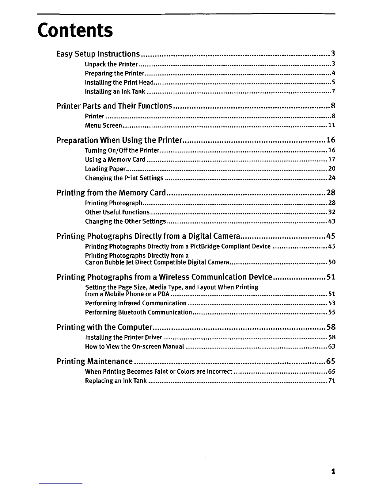 Printing Photographs Directly from a Digital Camera•.••••••••.••..••.••..••••••••...•.••45