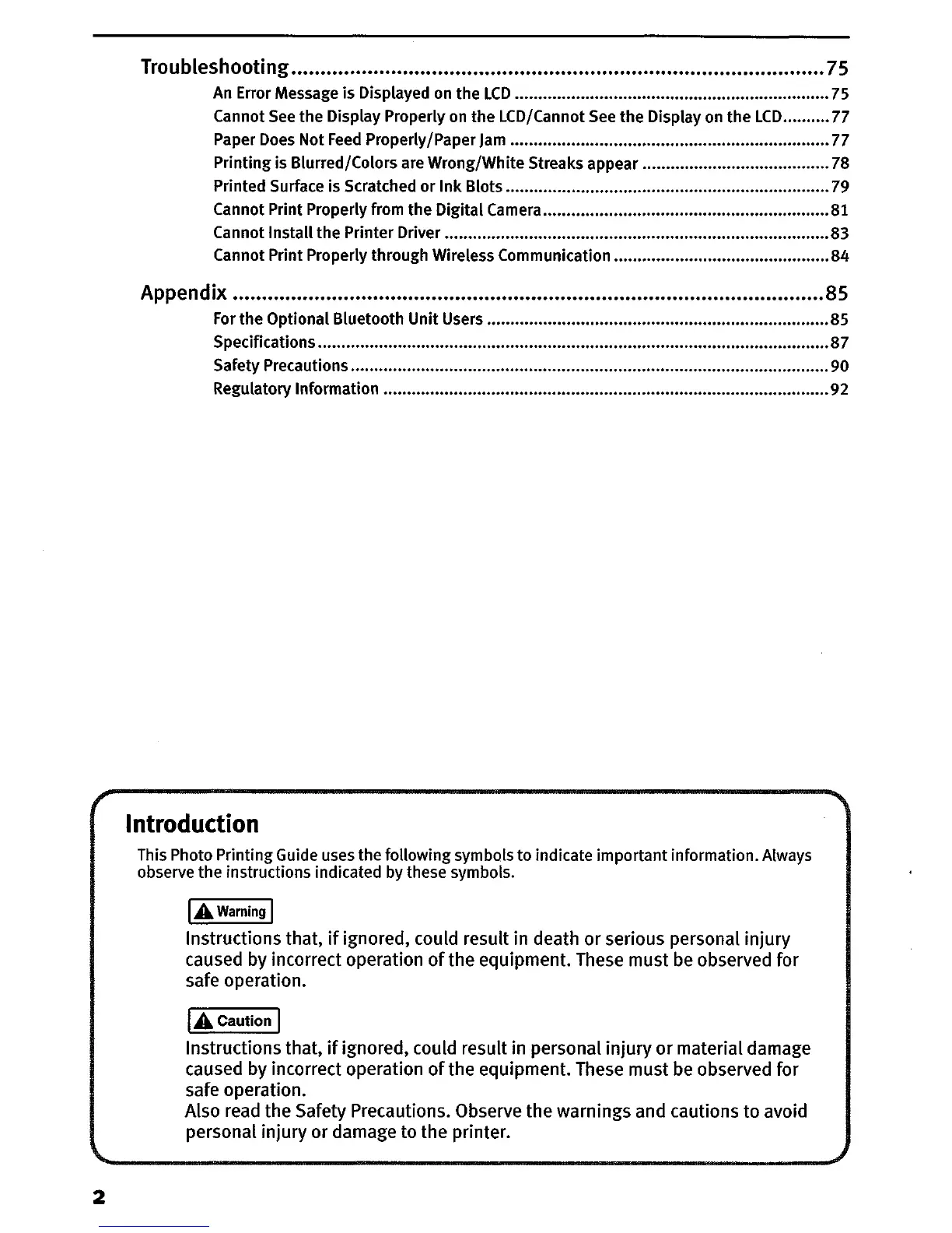 Also read the Safety Precautions. Observe the warnings and cautions to avoid
