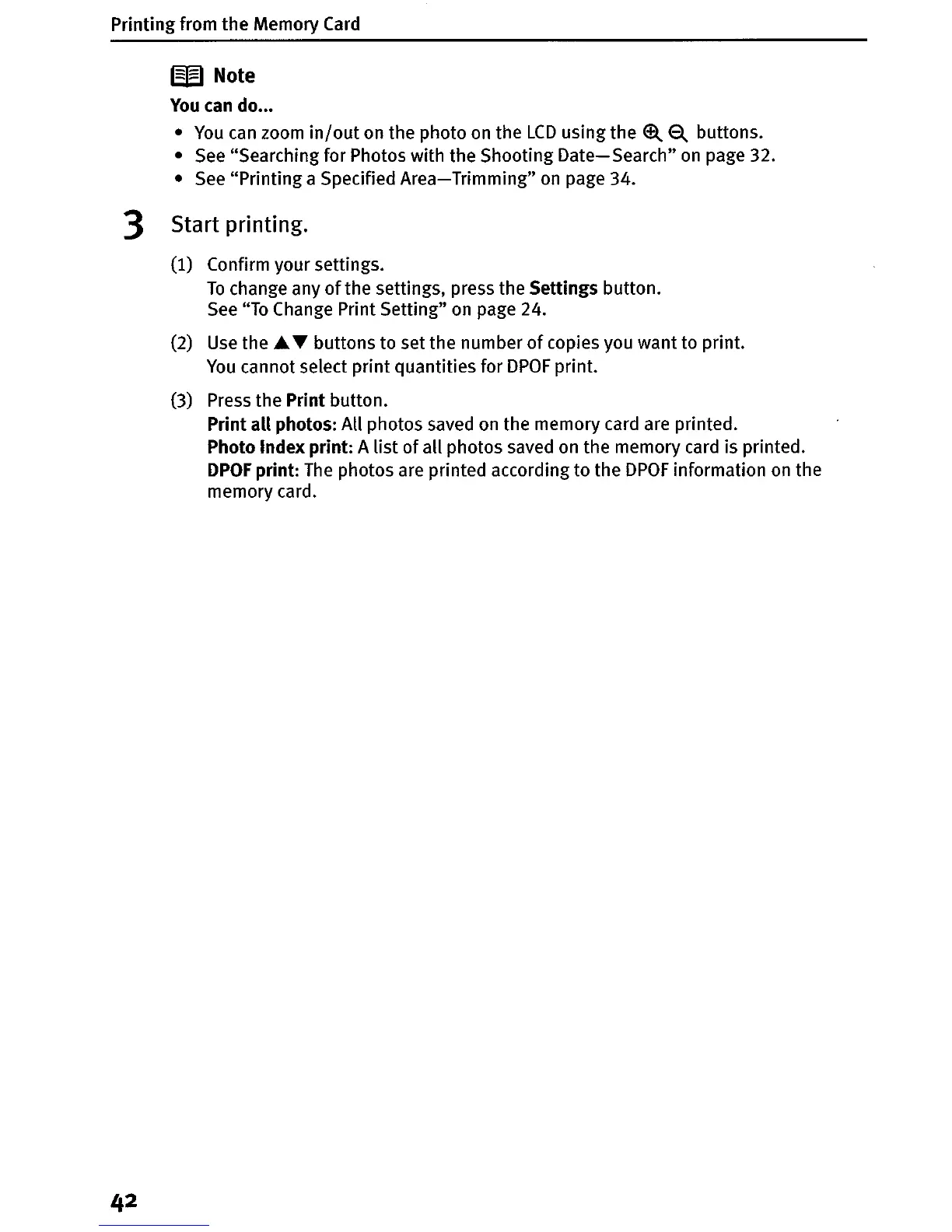 Printing from the Memory Card