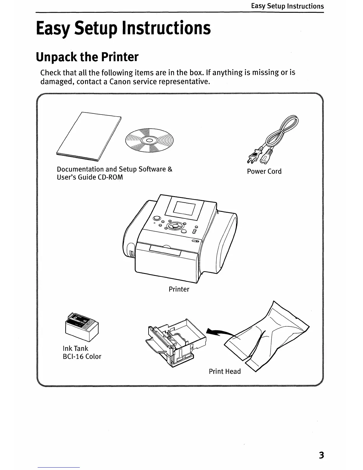 Canon SELPHY DS810 - Easy Setup Instructions; Unpack the Printer