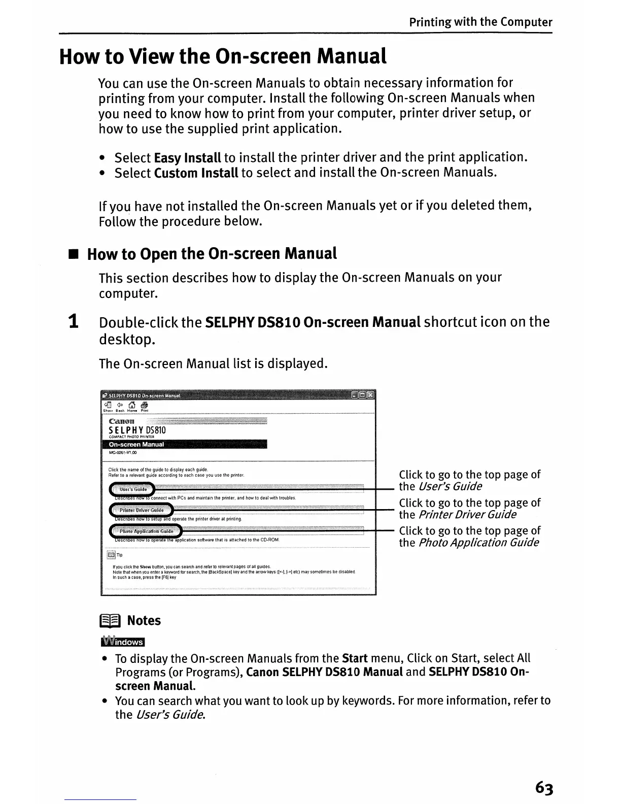 printing from your computer. Install the following On-screen Manuals when