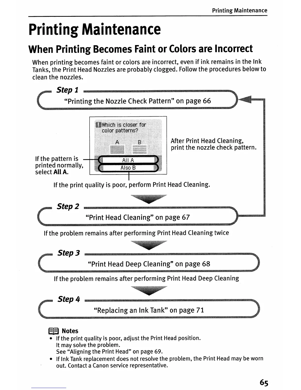 Ink Tank replacement does not resolve the problem, the Print Head may be worn