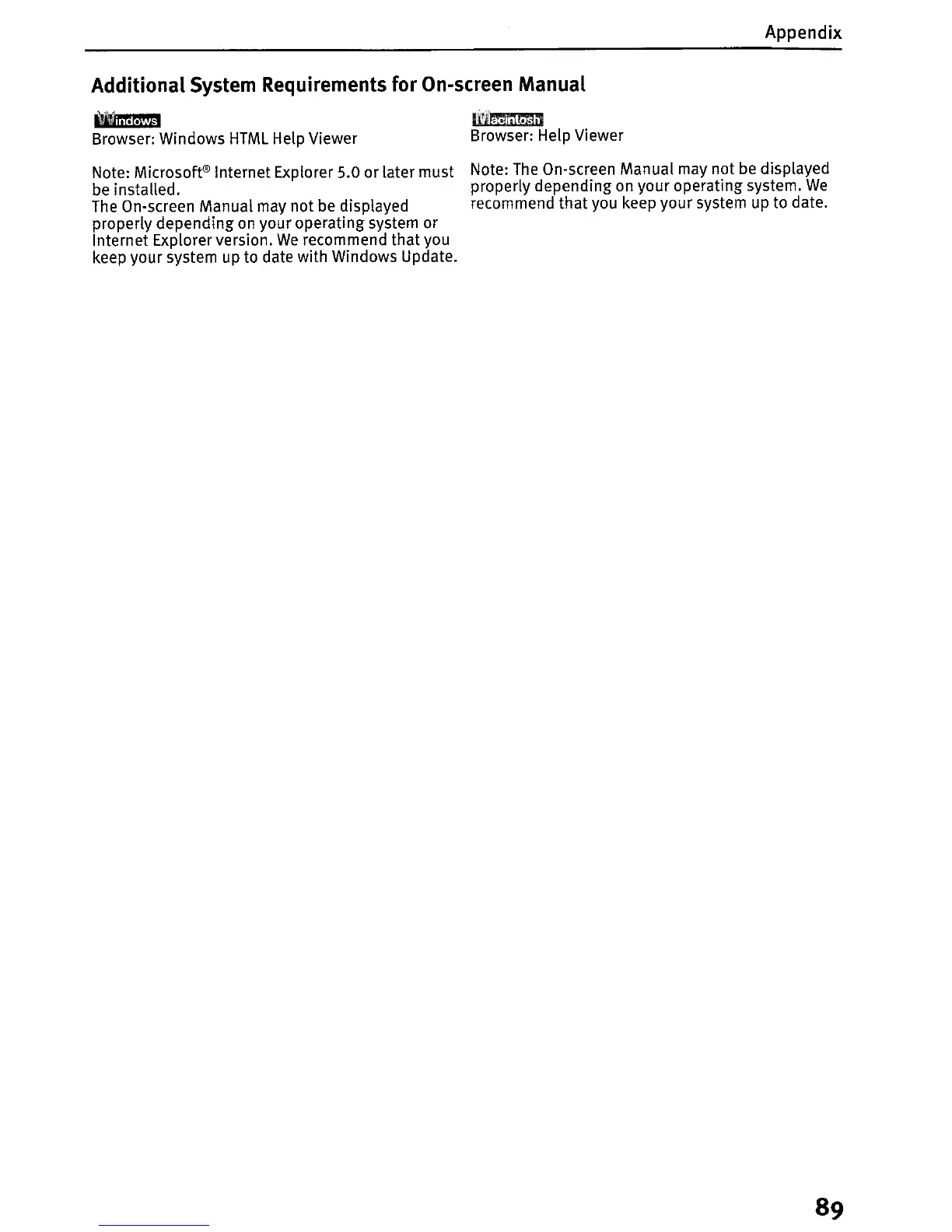 On-screen Manual may not