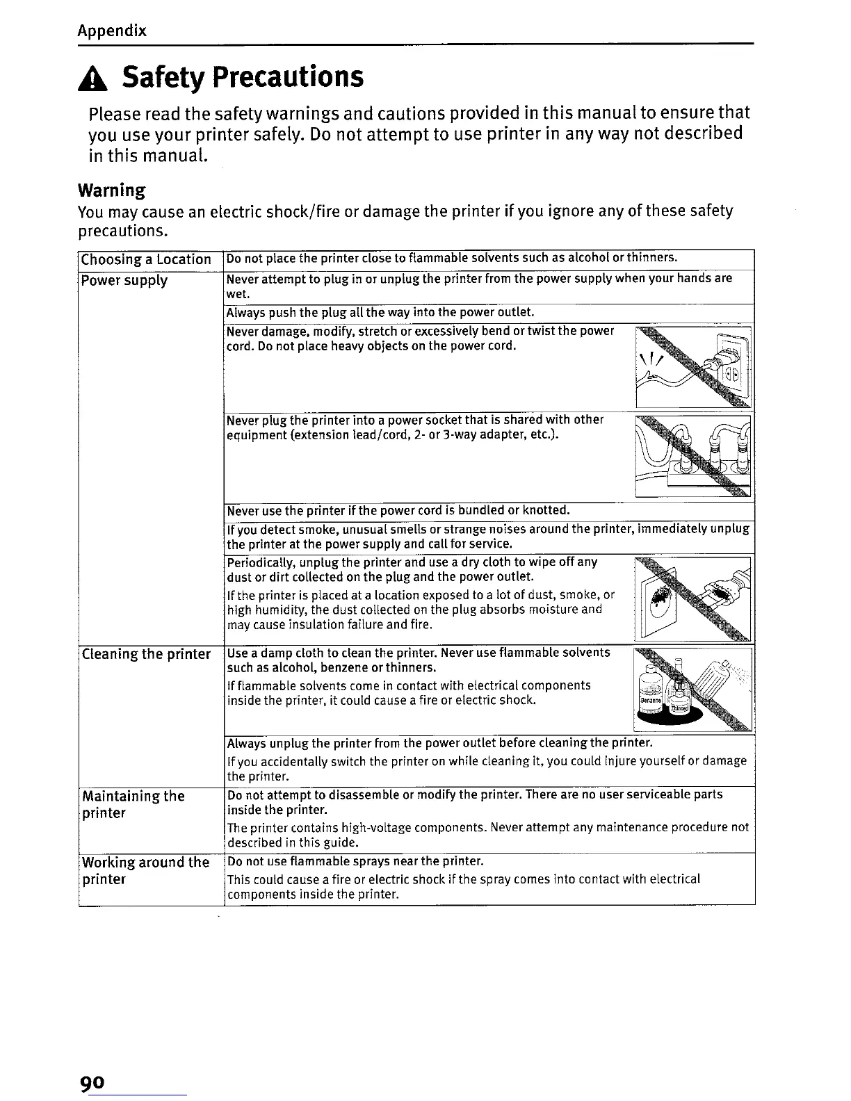 clean the printer. Never use flammable solvents
