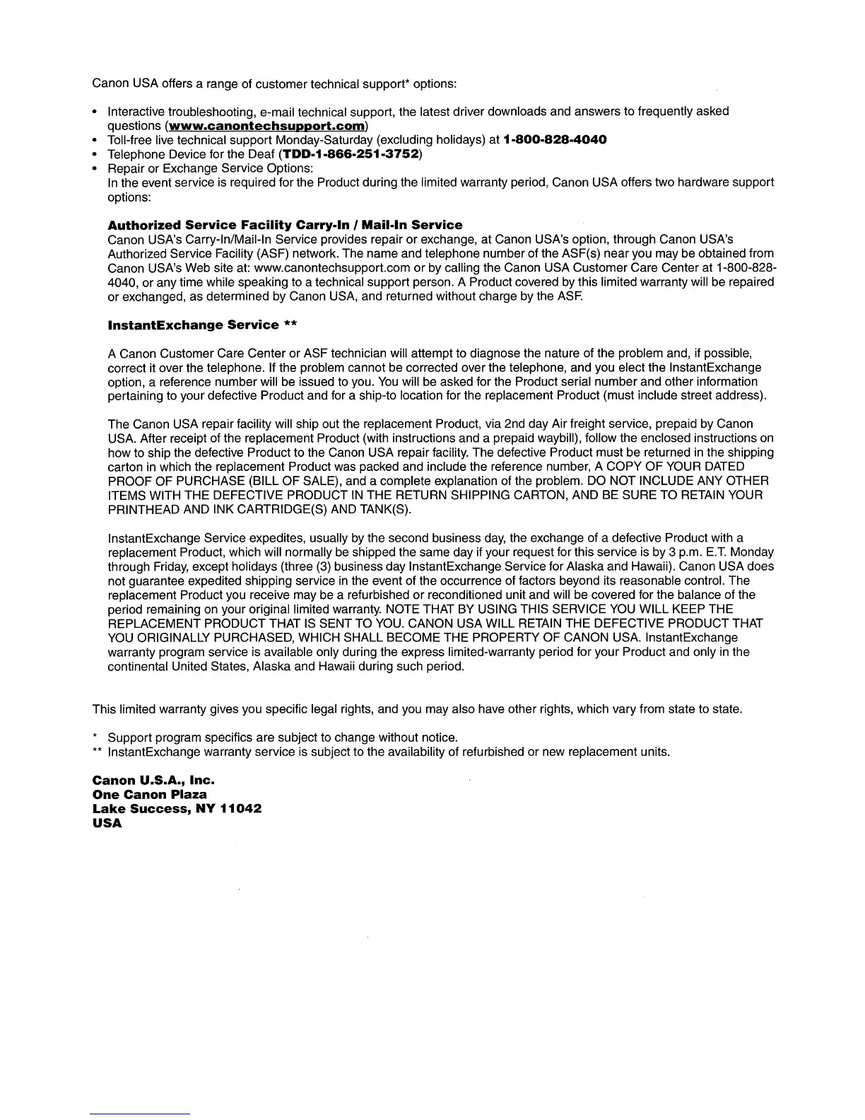 Canon USA offers a range of customer technical support* options: