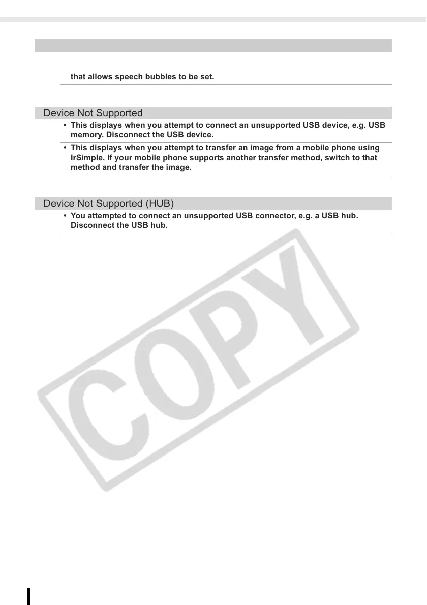 • This displays when you attempt to connect an unsupported USB device, e.g. USB