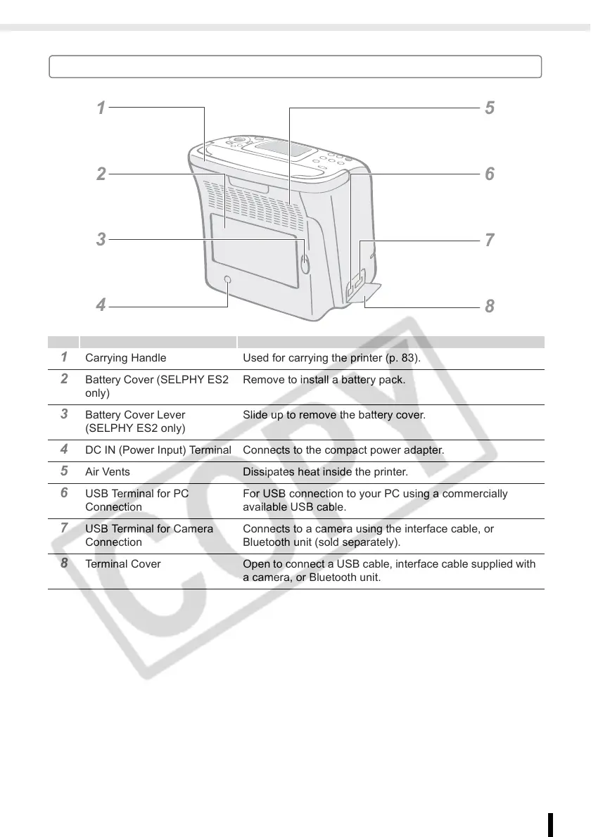 1 Carrying Handle Used for carrying the printer (p. 83).