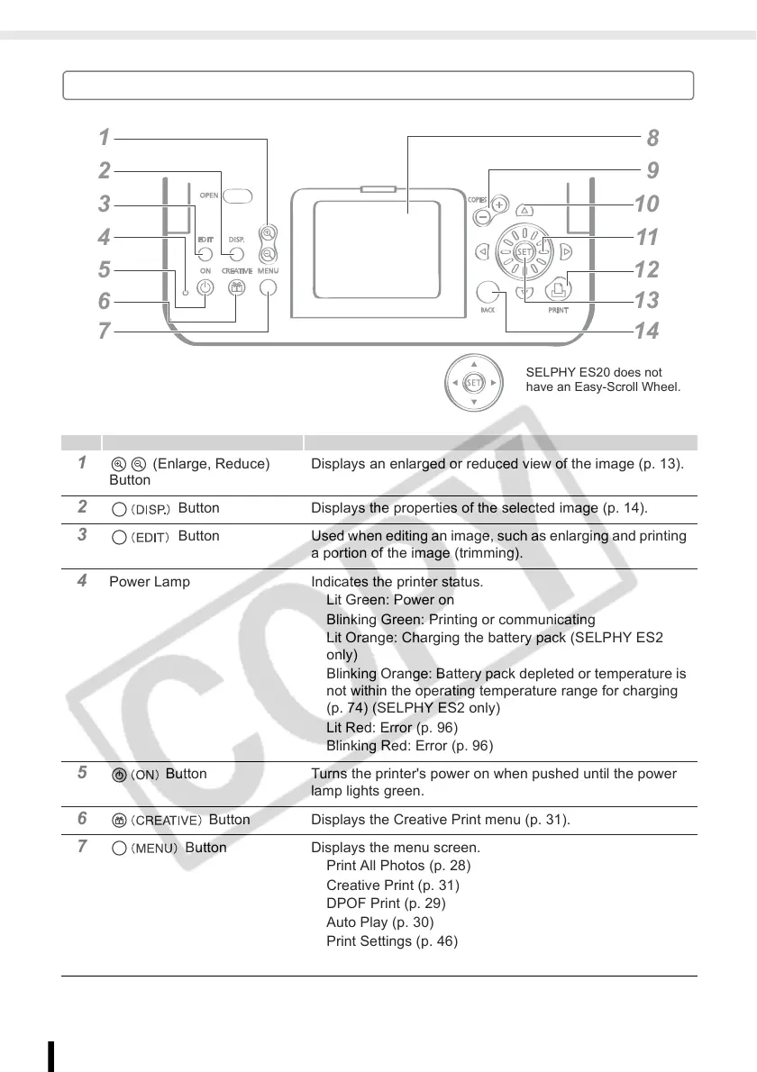 6 Button Displays the Creative Print menu (p. 31).