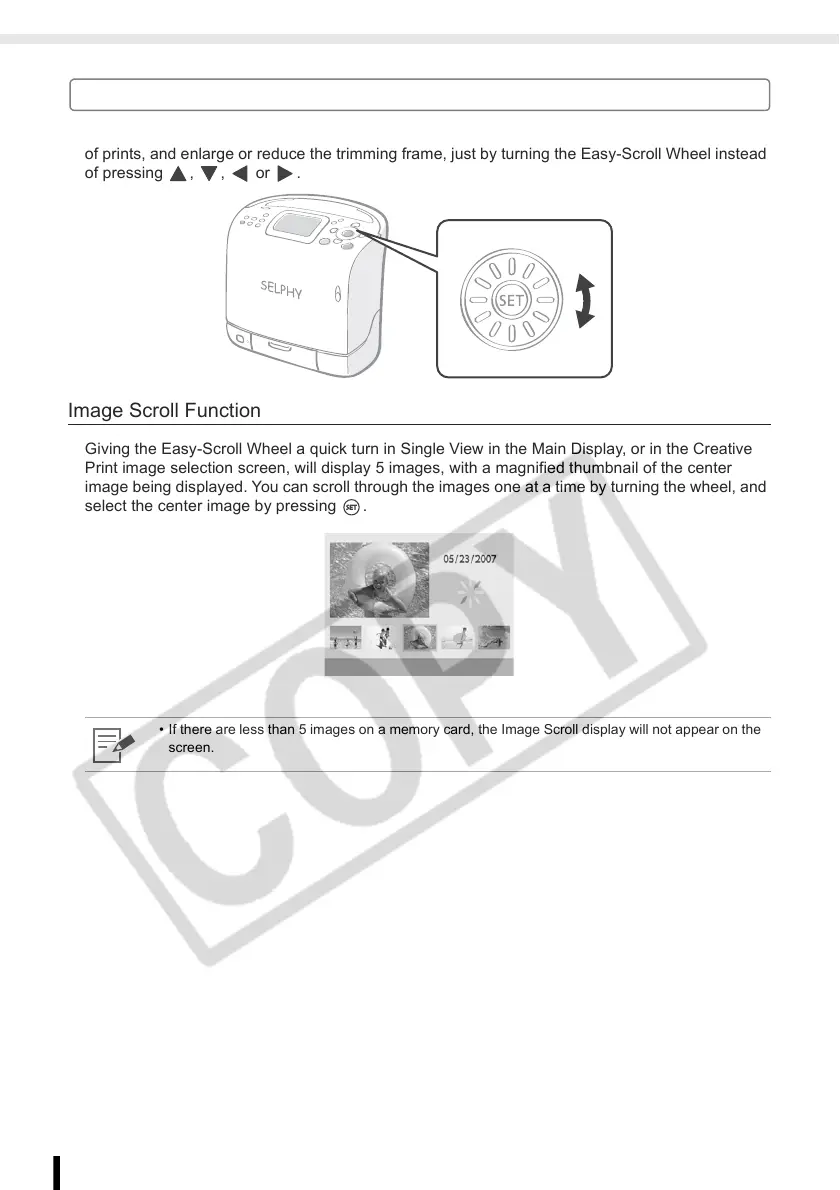 • If there are less than 5 images on a memory card, the Image Scroll display will not appear on the