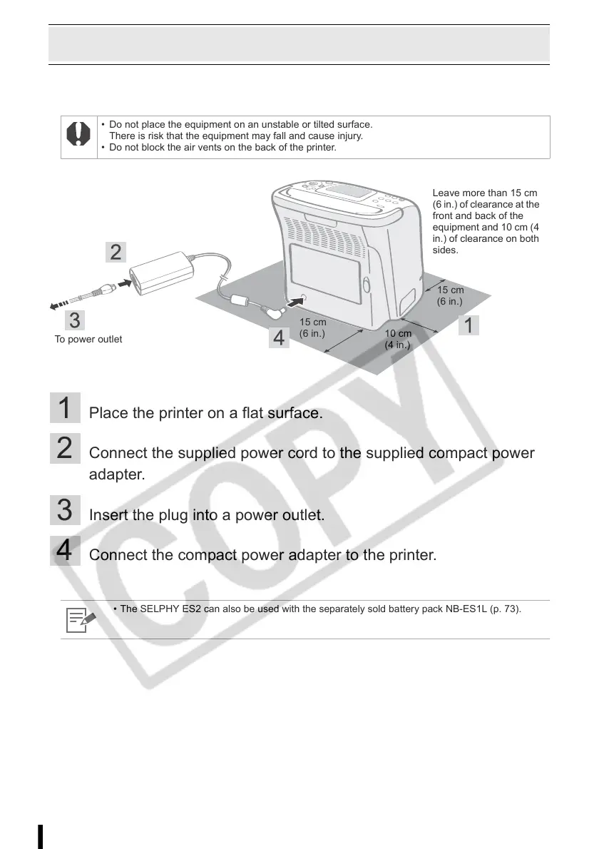 Set up and connect your SELPHY printer in the following manner for safe use.