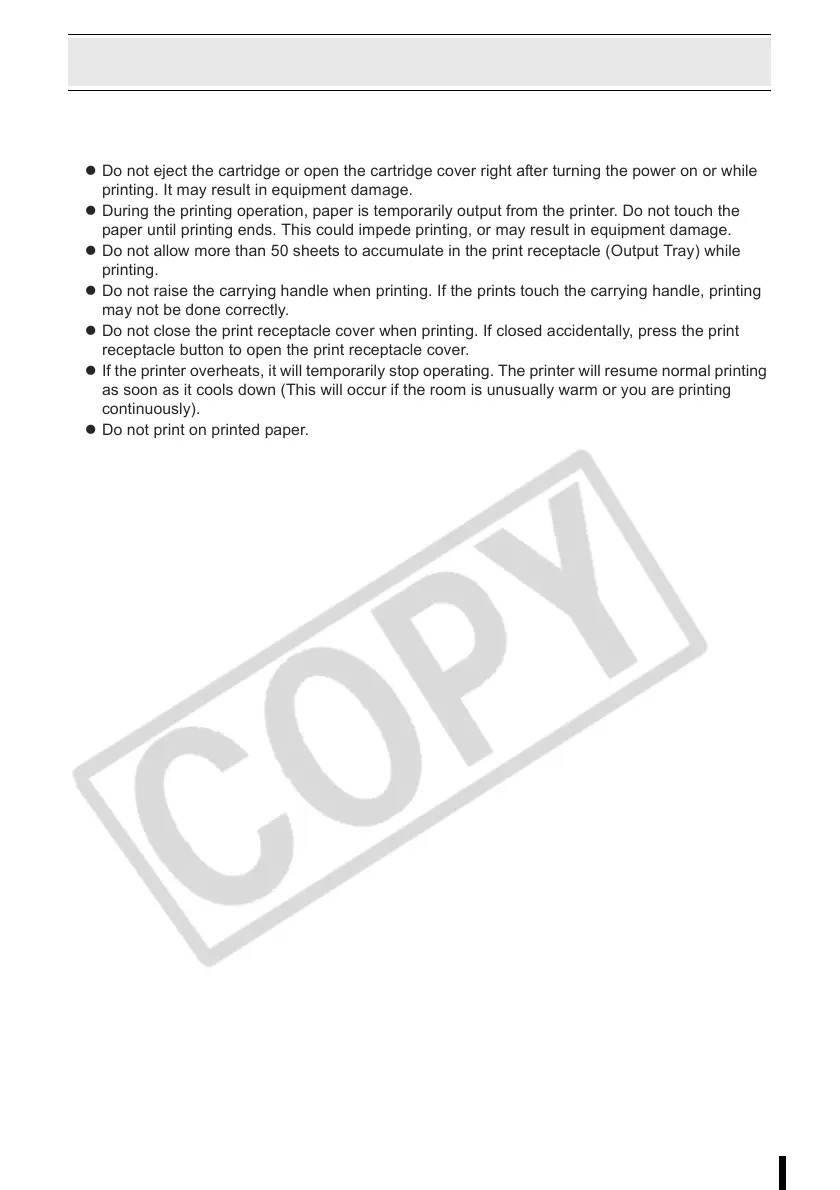 z Do not raise the carrying handle when printing. If the prints touch the carrying handle, printing