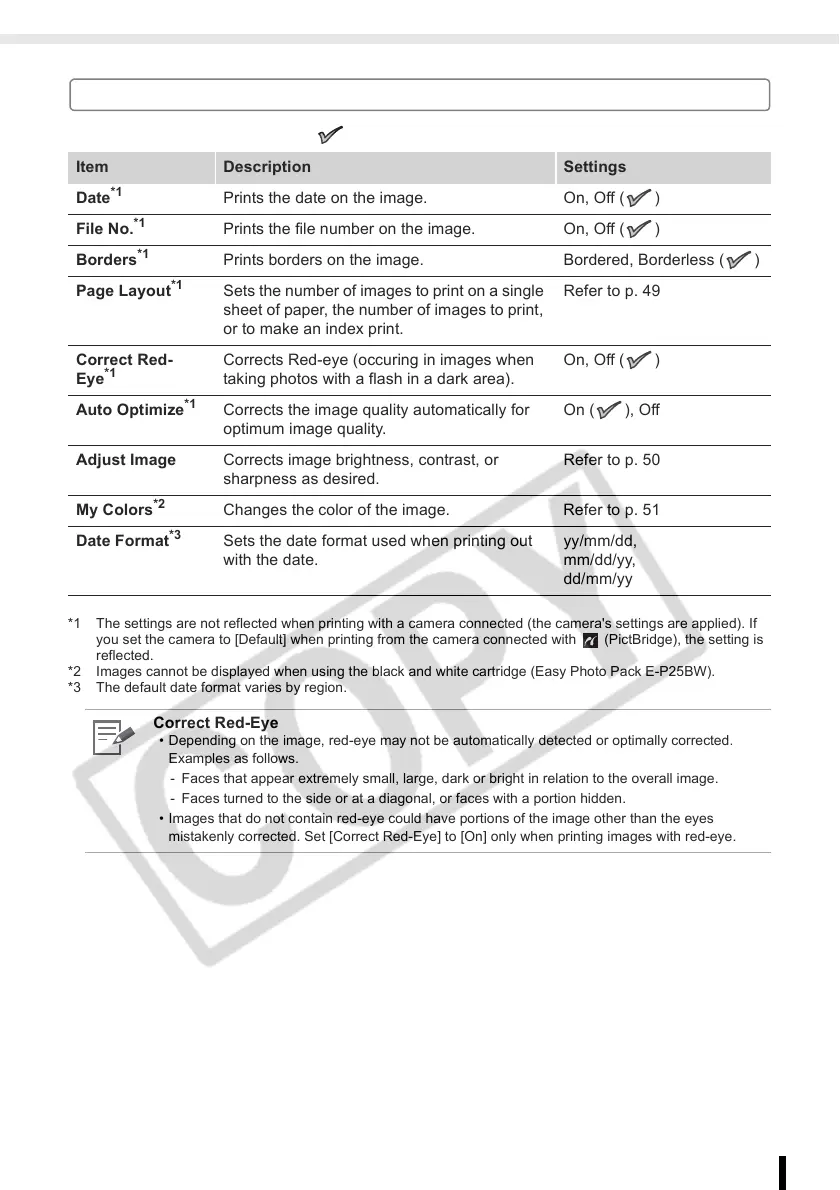 *1 The settings are not reflected when printing with a camera connected (the camera's settings are applied). If