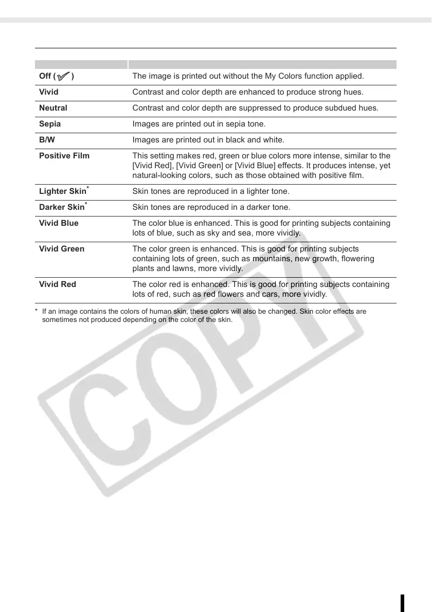 Vivid Red The color red is enhanced. This is good for printing subjects containing