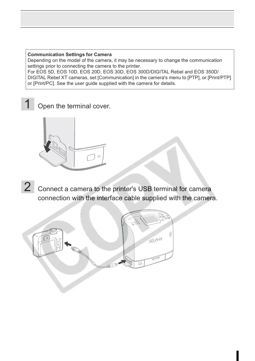 2 Connect a camera to the printer's USB terminal for camera