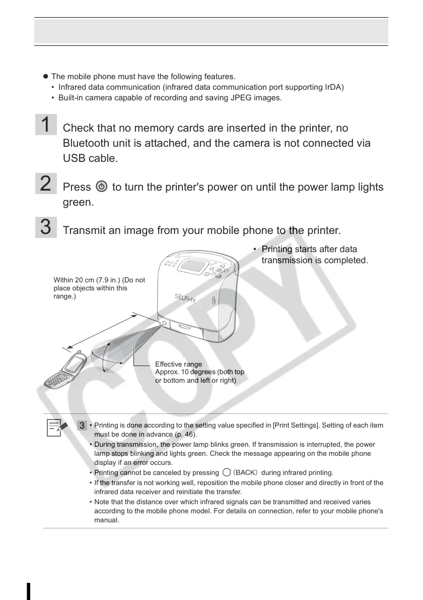 Infrared (IrDA) Wireless Printing (SELPHY ES2 only)