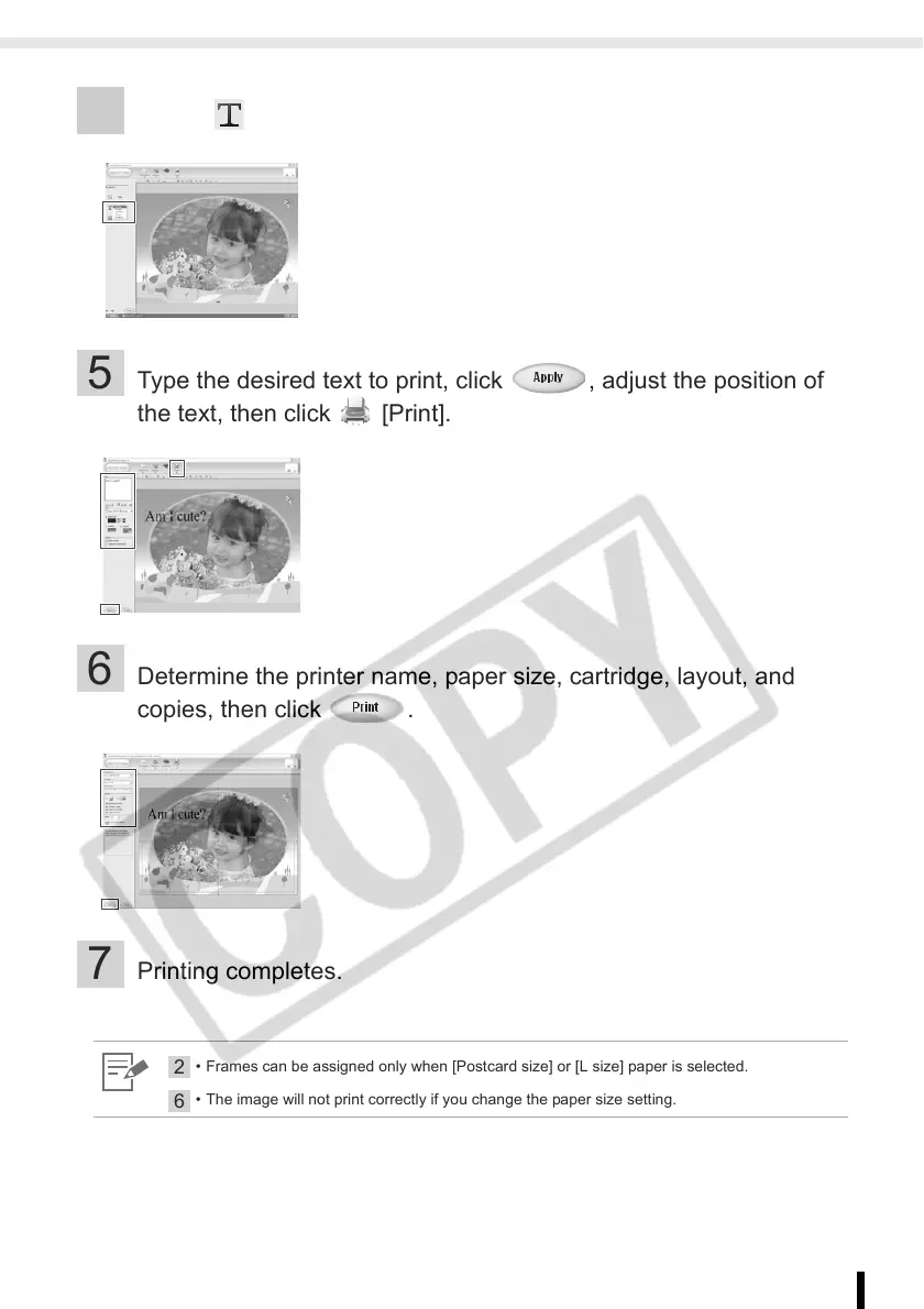 5 Type the desired text to print, click , adjust the position of
