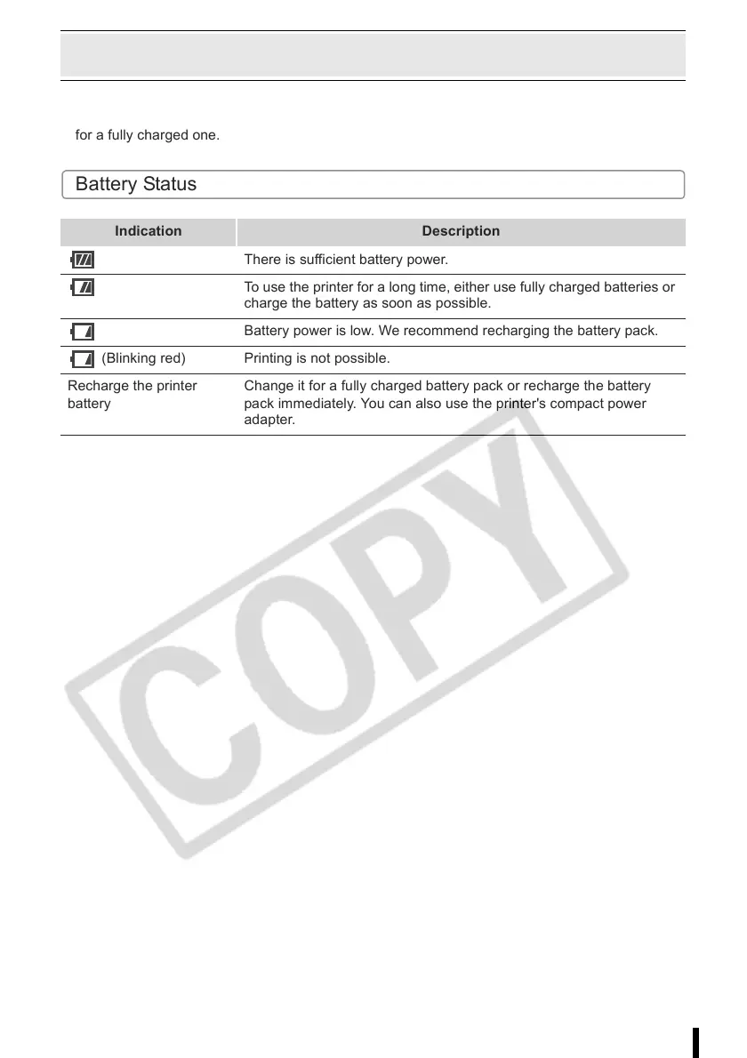 message displayed in the LCD monitor of the printer, and recharge the battery pack or change it
