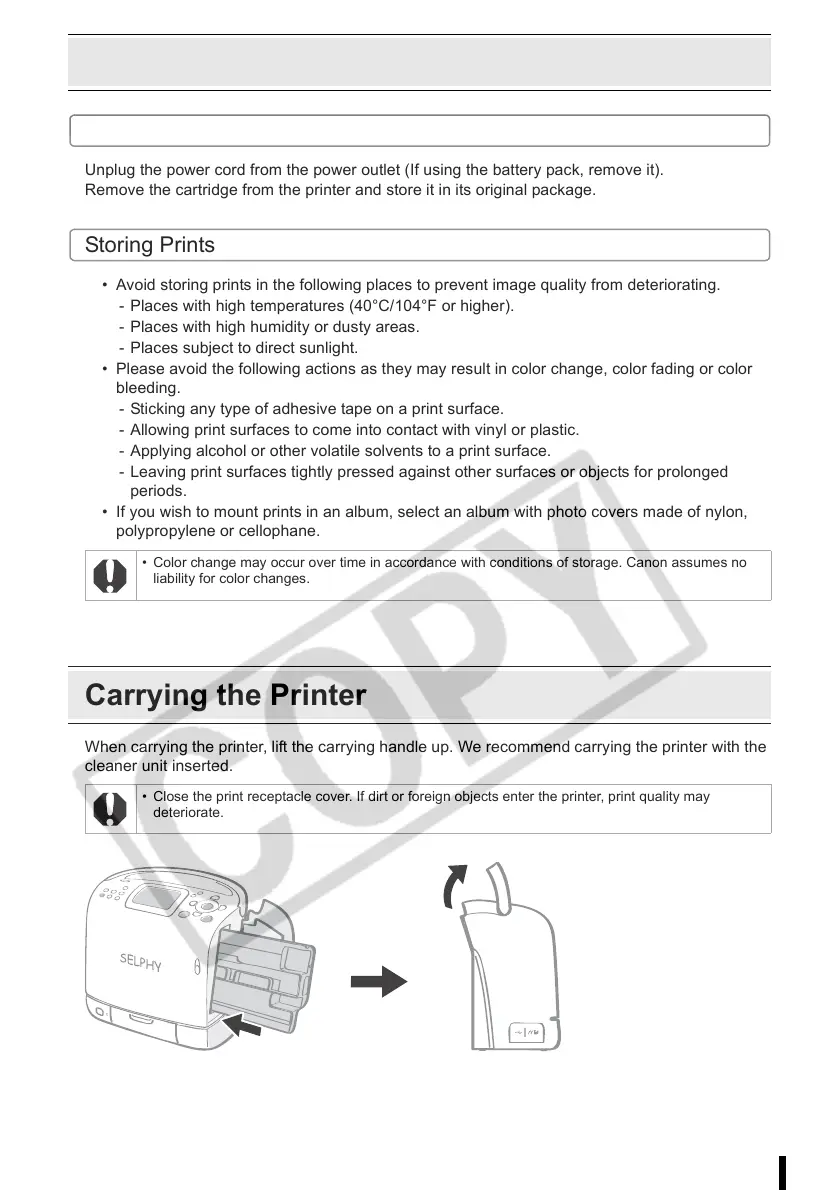 • Color change may occur over time in accordance with conditions of storage. Canon assumes no