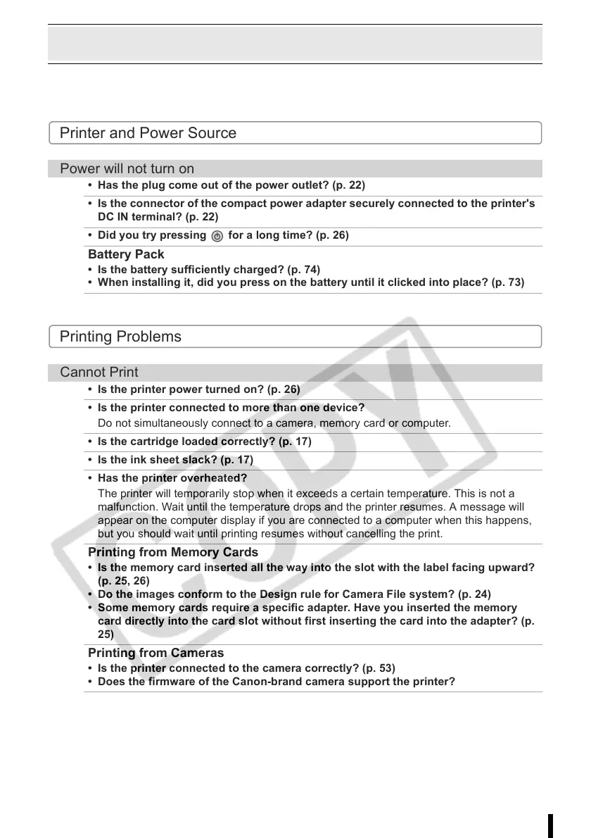 If the solutions below do not remedy your problem, contact the retail outlet or a Canon customer