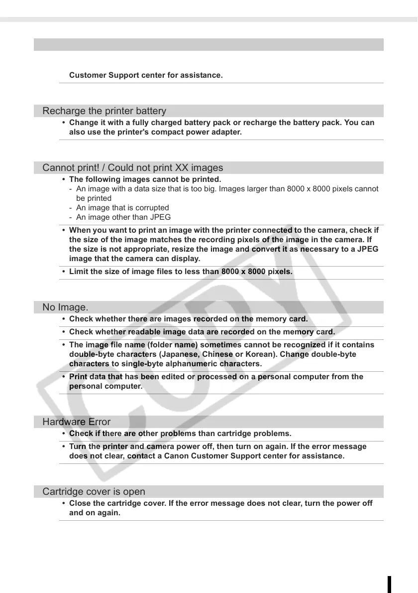 reload the cartridge. If the cartridge is stuck in the printer, contact a Canon