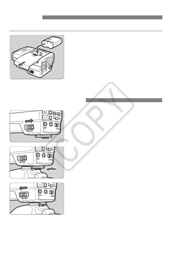 Canon ST-E2 - 安装电池; 把闪光灯安装到相机上