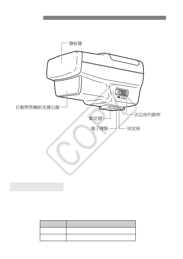 焦點相容。 自動對焦輔助光相容於28mm和更長的鏡頭 有效範圍如下