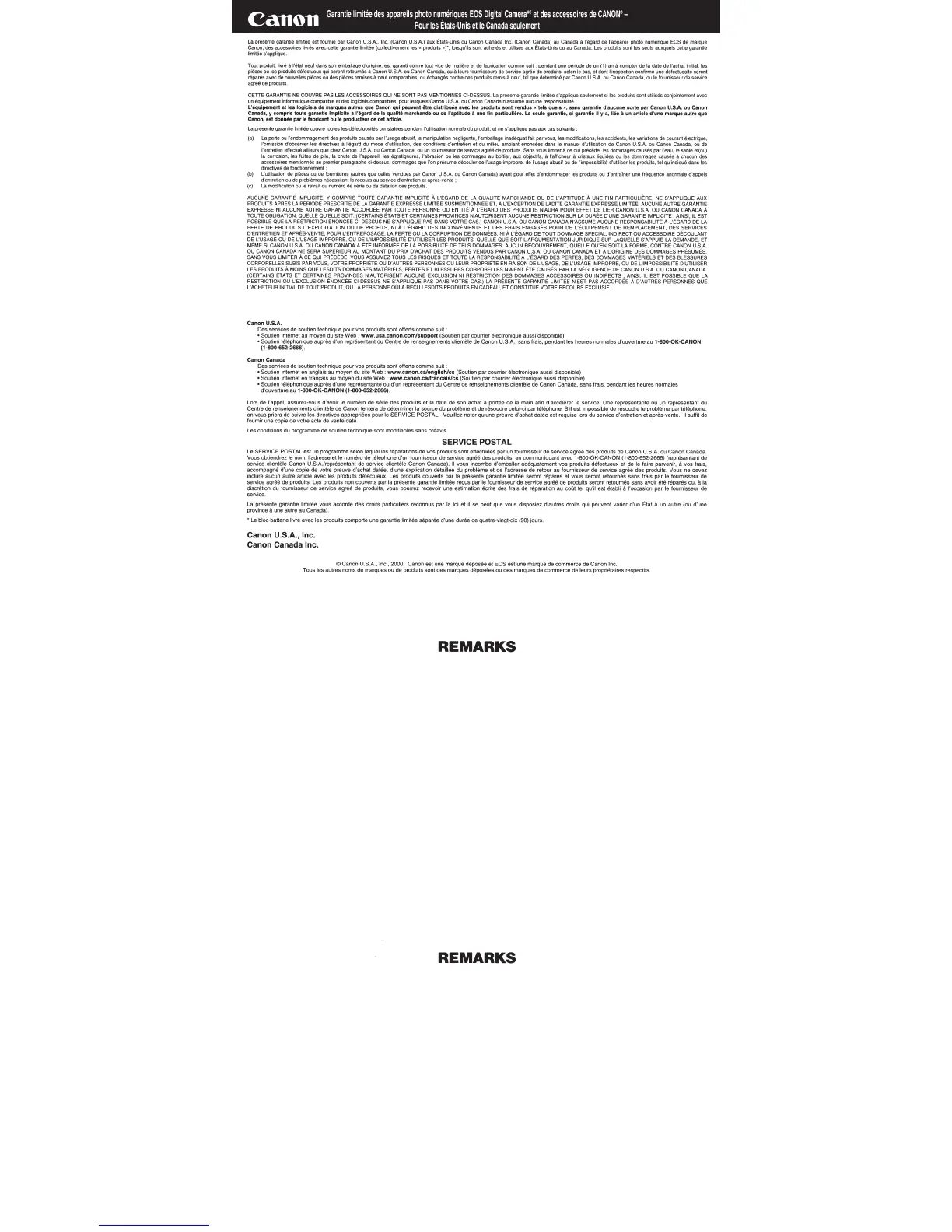 en communiquant avec 1-800-0K-CANON (1·800·652·2666) (representant de