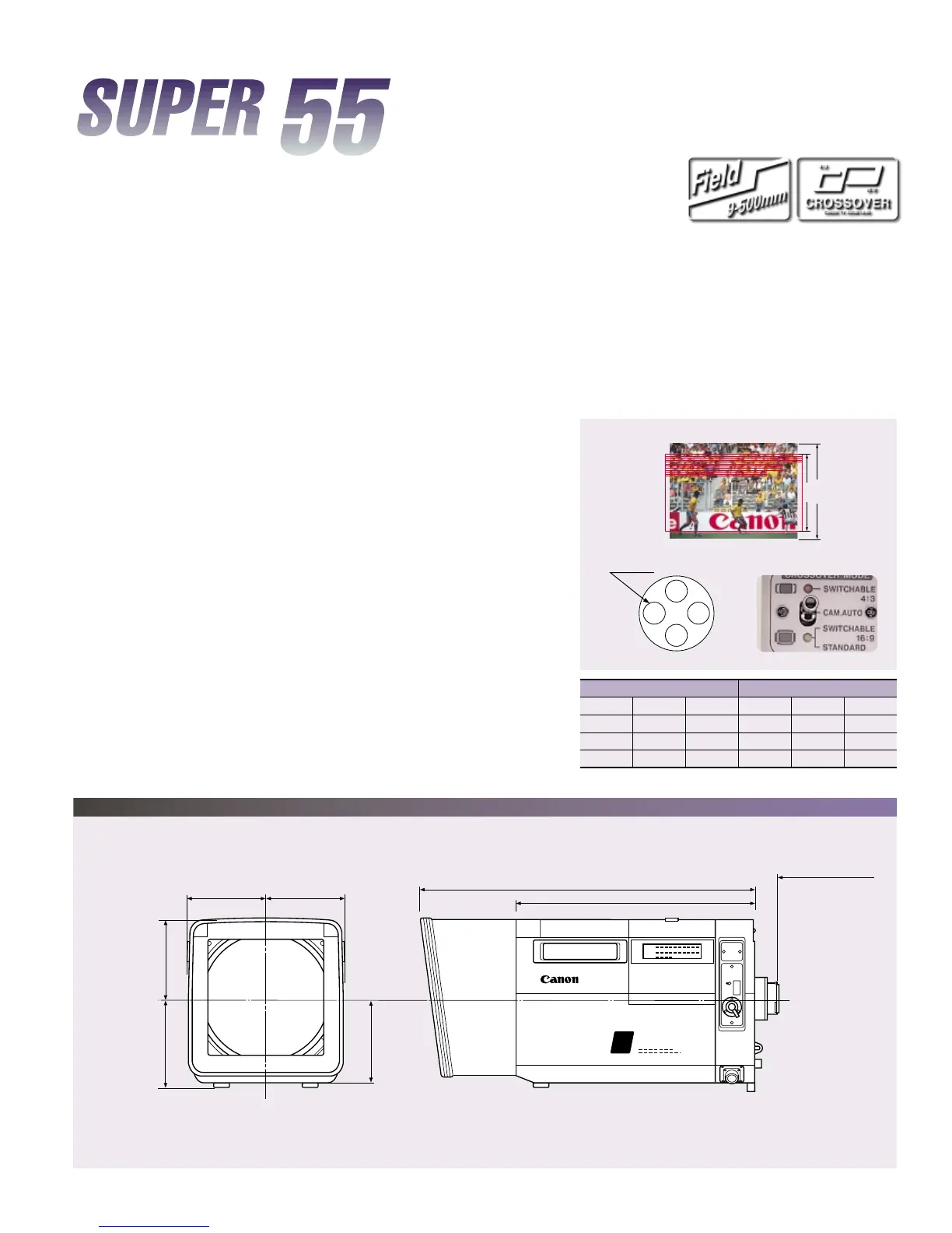 in the 4:3 mode in some of the dual aspect ratio switchable camera systems. The redesigned circuitry of the "Super 55" realizes