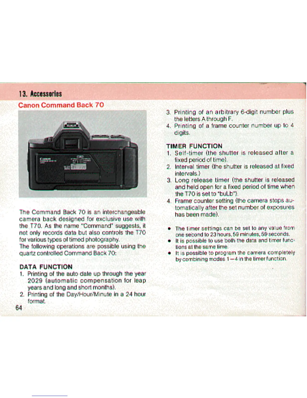 Canon T70 - Canon T70 Optional Accessories Overview