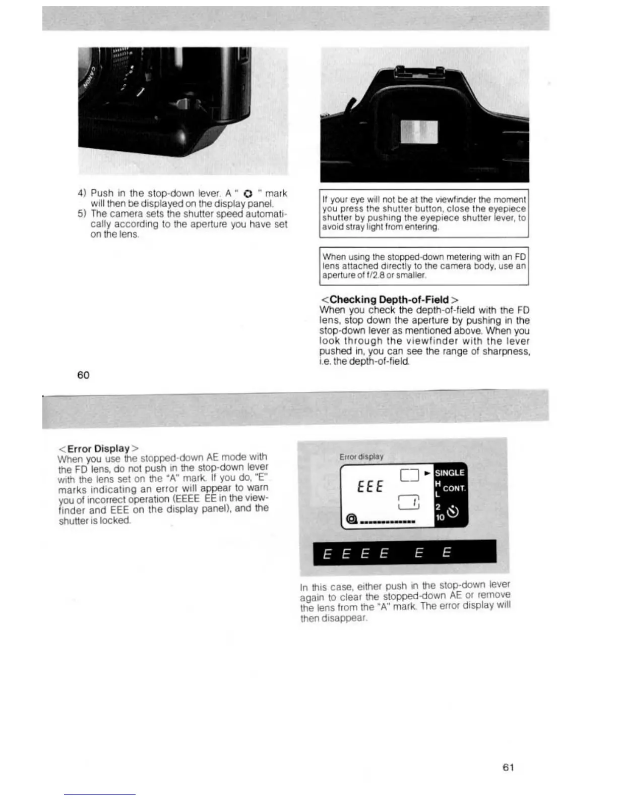 Canon T90 - Checking Depth-Of-Field; Error Display