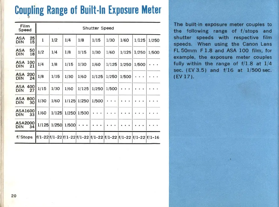 Canon TL - Exposure Meter Coupling Range