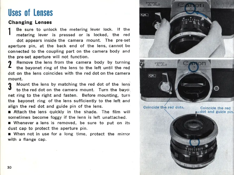 Canon TL - Using Lenses with the Canon TL; Changing Lenses