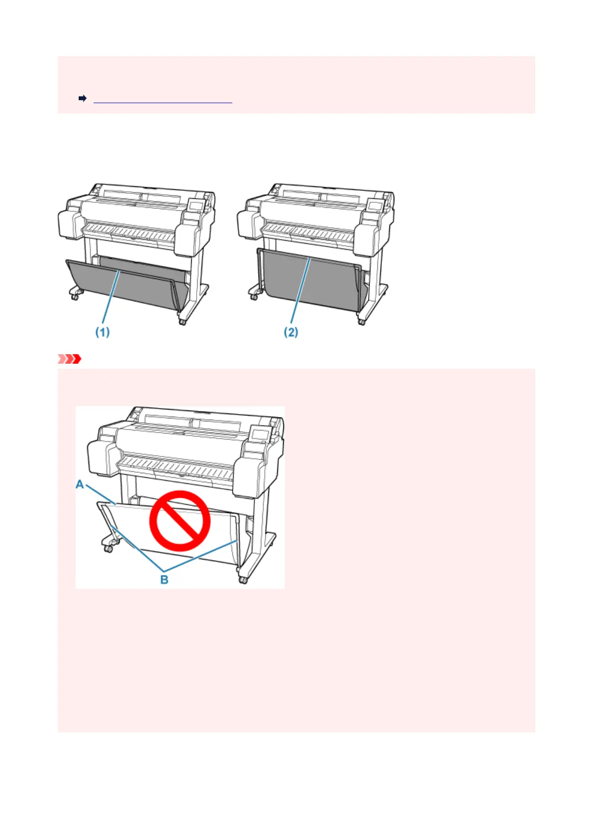 • To store printed documents in the basket, first pull down the side rod (B) evenly so that the front rod (A)•