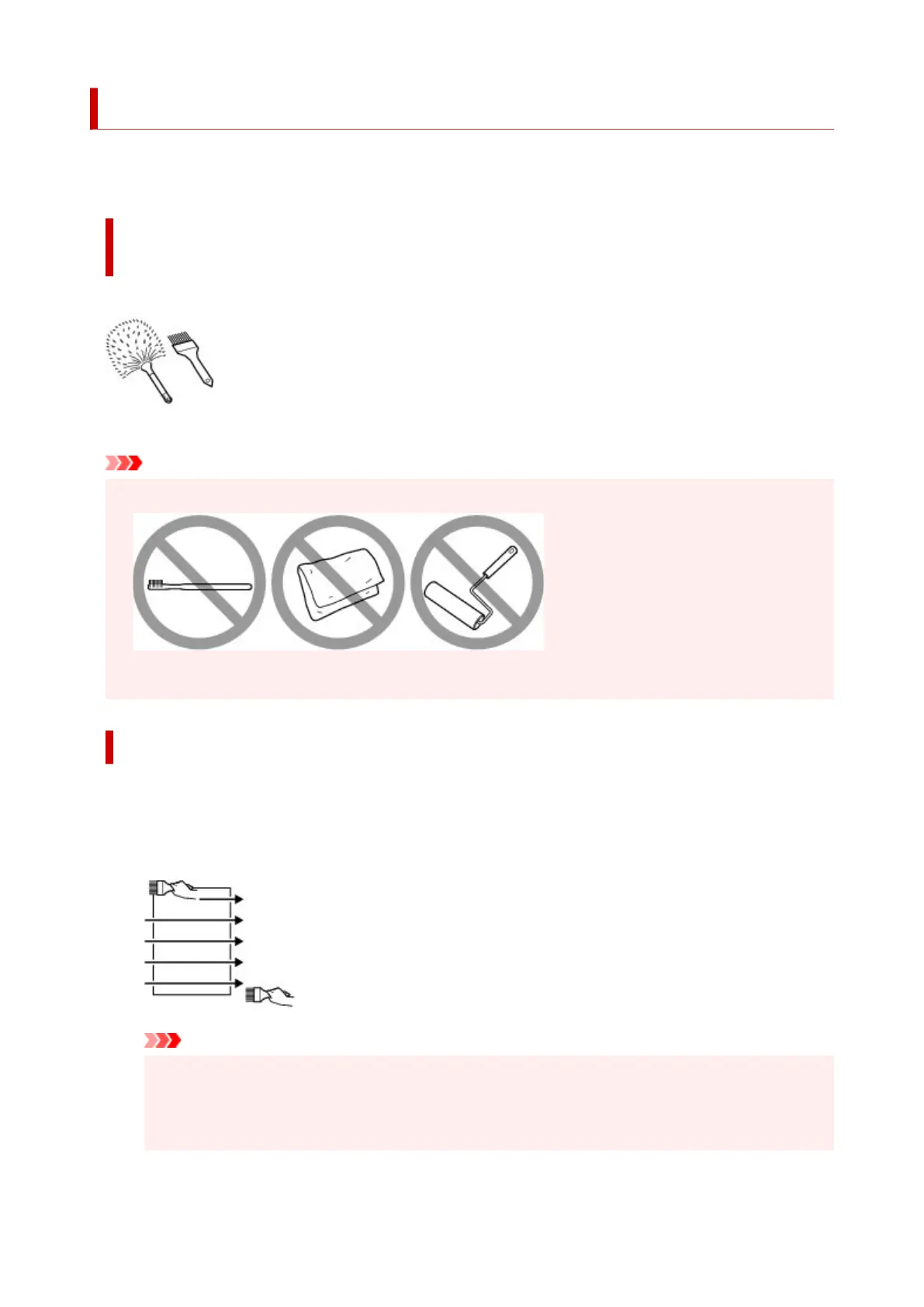 • Be sure not to use brushes as shown below. The printing surface may be damaged.