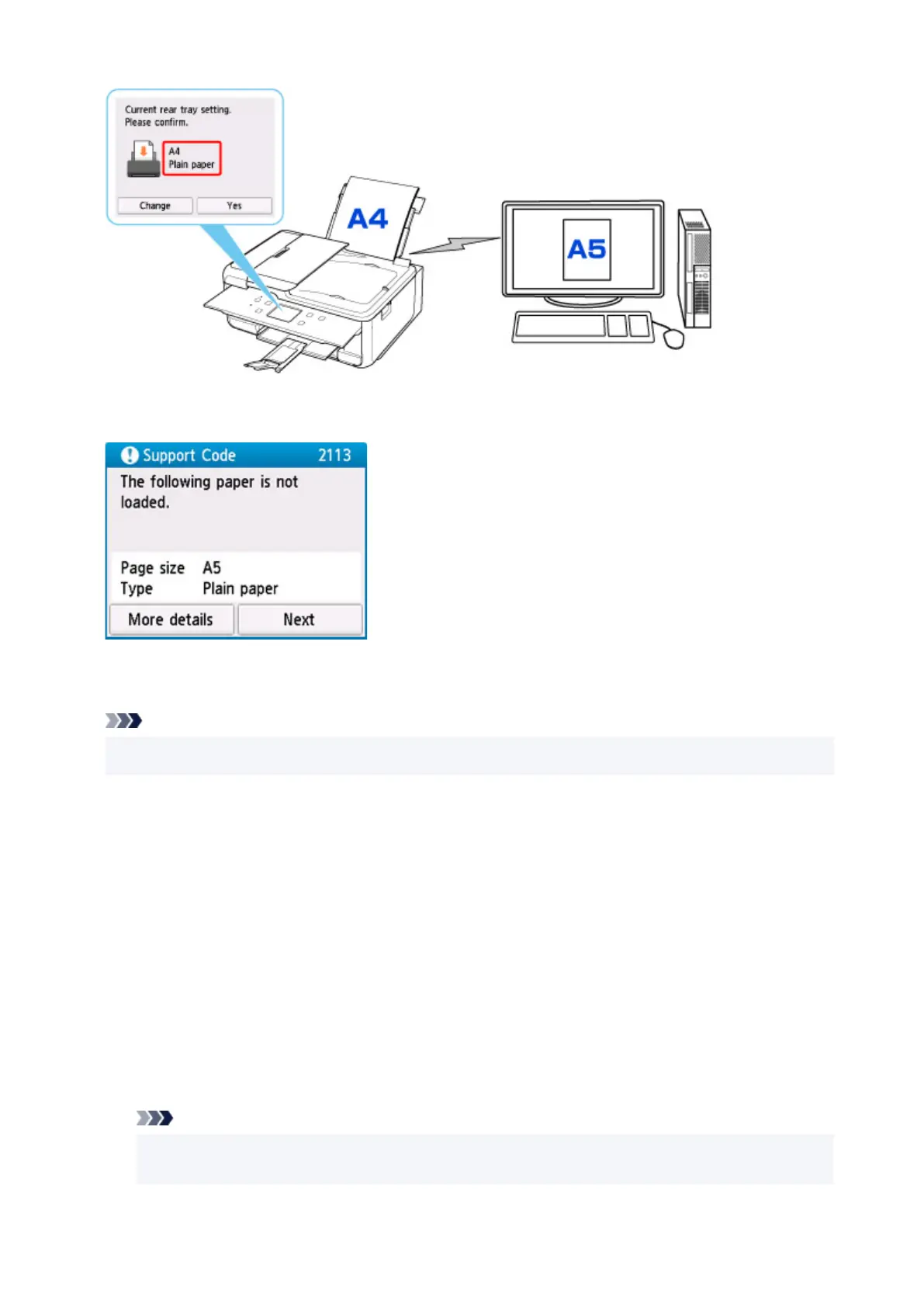For example, when the paper size setting for printing/copying is A5 and the paper information