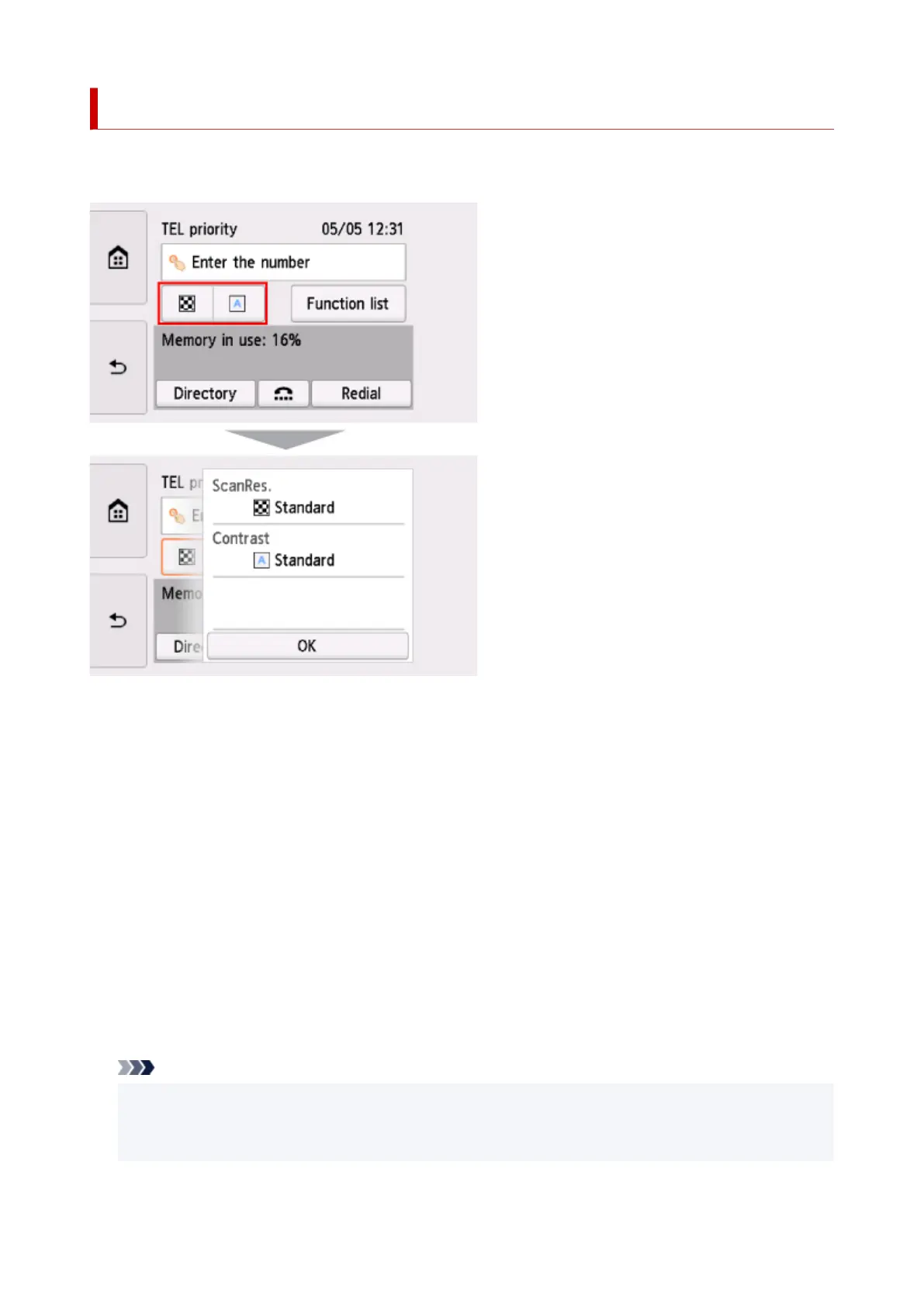 You can change the send settings such as the scan contrast or the scan resolution on the Fax standby